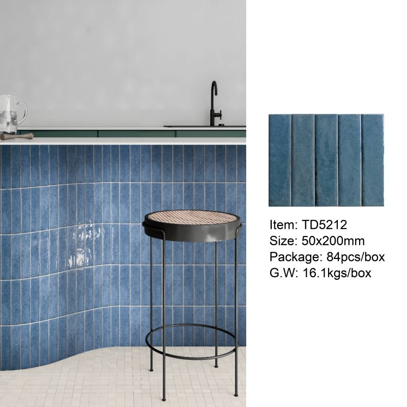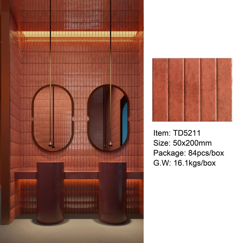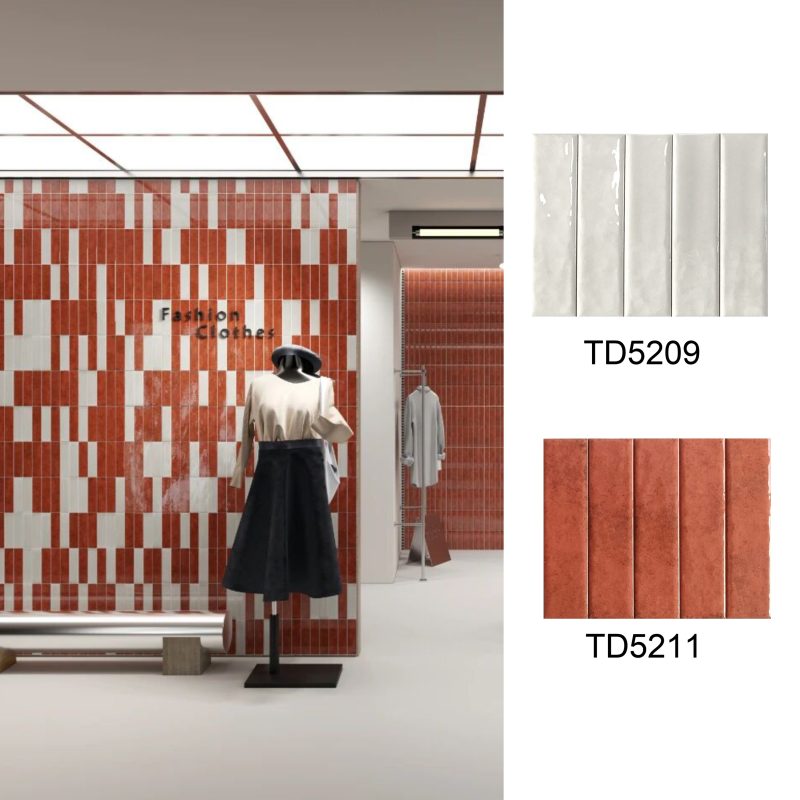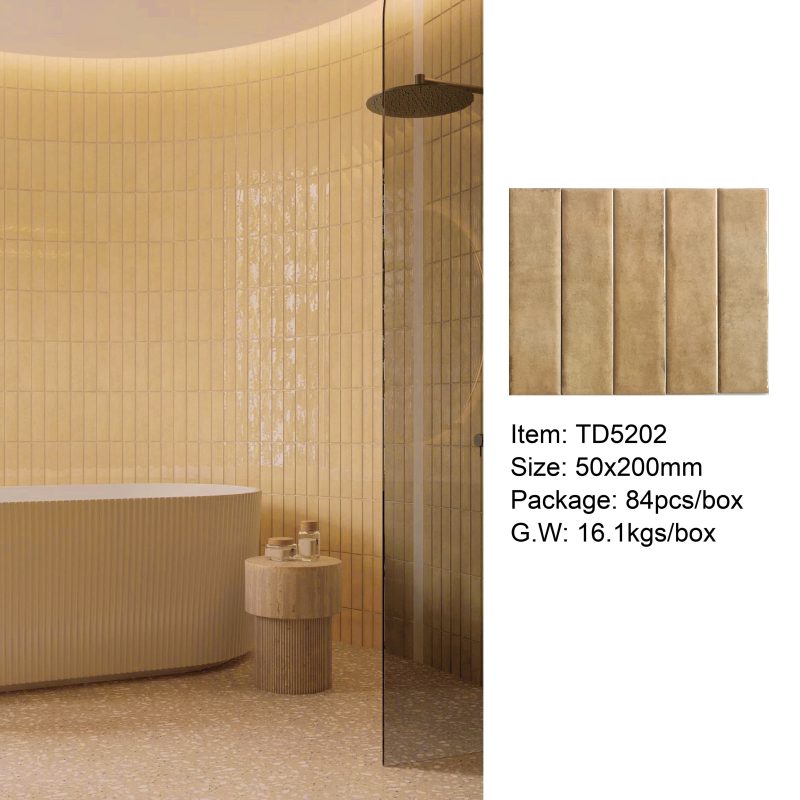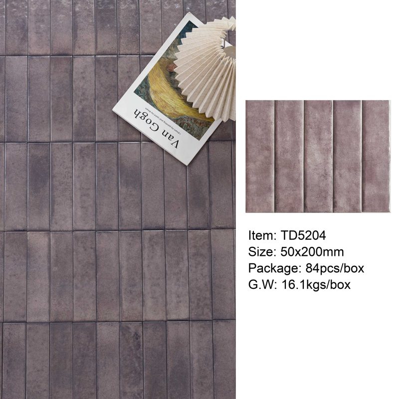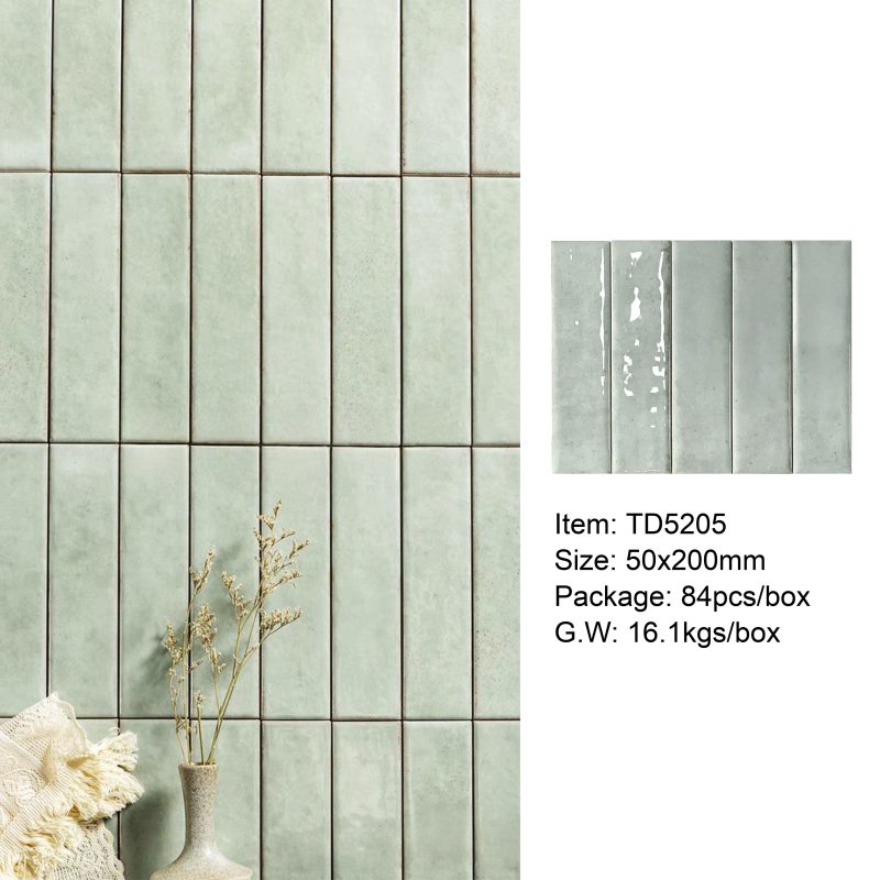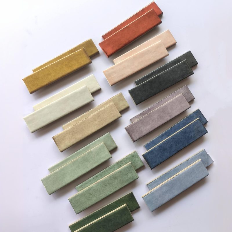 50×200mm Vintage-Style Frit Glazed Wall Tiles, 12 Dopamine Trend Colors, Glossy surface, Full-Body Porcelain with Moisture & Stain Resistance, Ideal for Kitchen/Bathroom Walls, Boutique Hotel & Retail Store Feature Walls