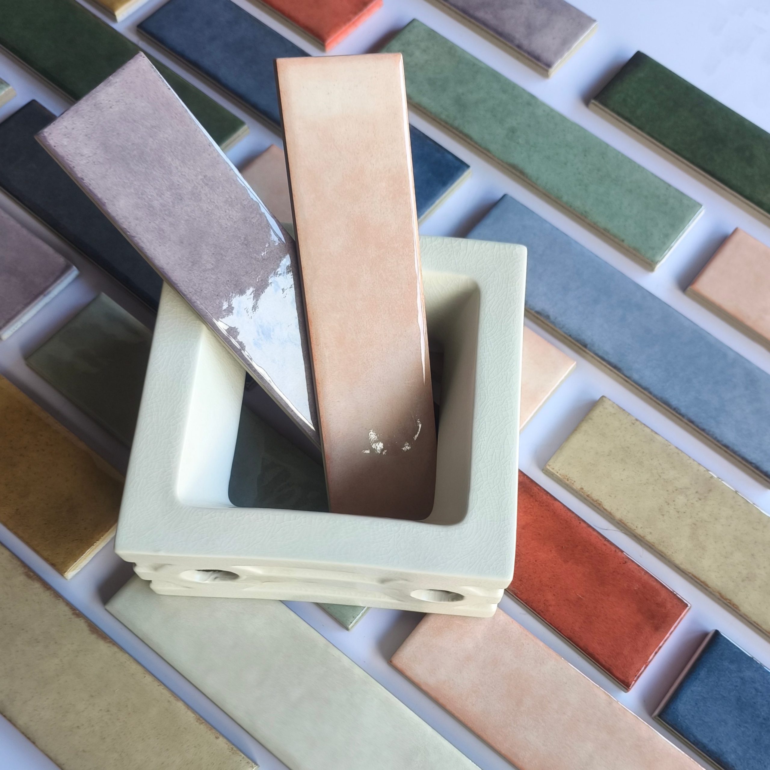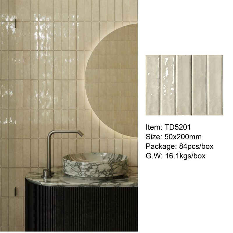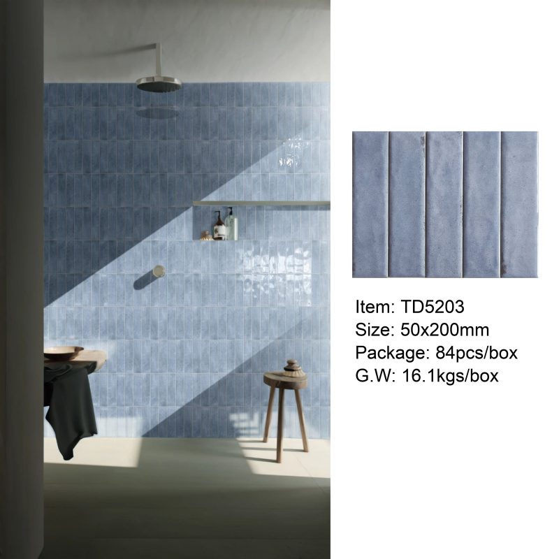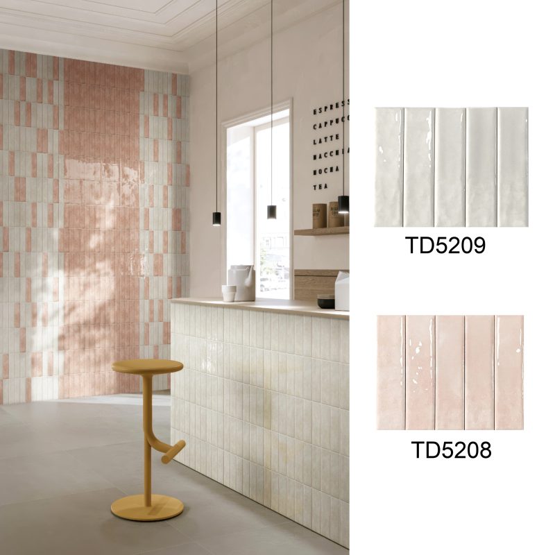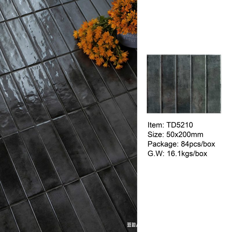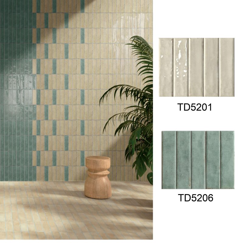 50×200mm Vintage-Style Frit Glazed Wall Tiles, 12 Dopamine Trend Colors, Glossy surface, Full-Body Porcelain with Moisture & Stain Resistance, Ideal for Kitchen/Bathroom Walls, Boutique Hotel & Retail Store Feature Walls